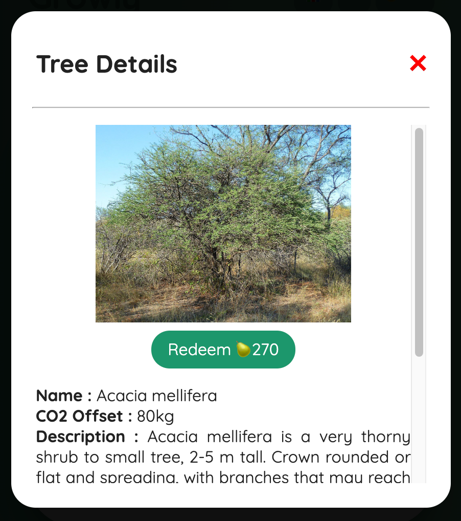 Every work session you will get pears (points) depends how long it is, that can convert to a real tree with certificate.