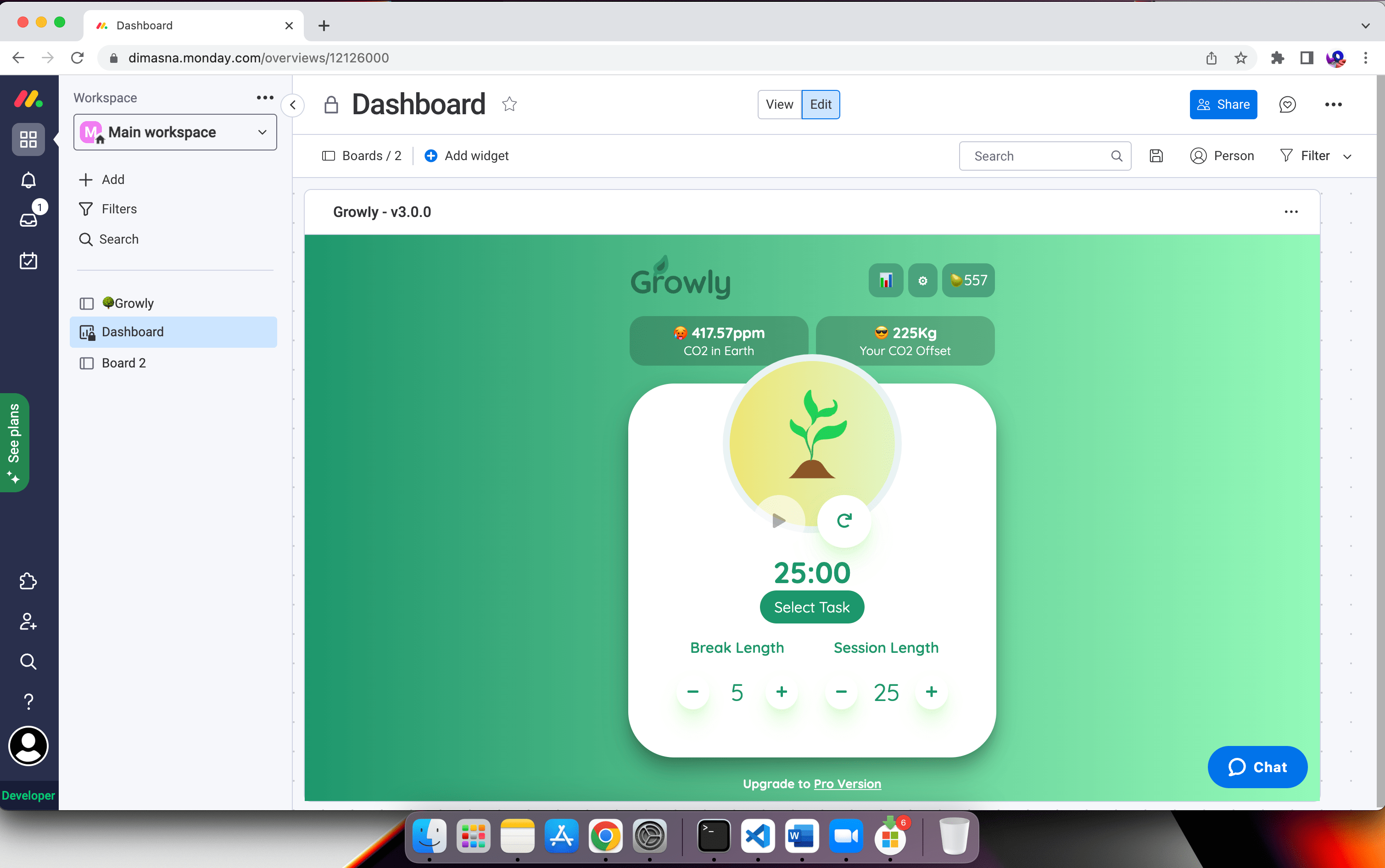Growly is a monday app that design to help you focus on task you're working on that inspired by Pomodoro Technique with customization to make you aware and contribute for combating climate change.